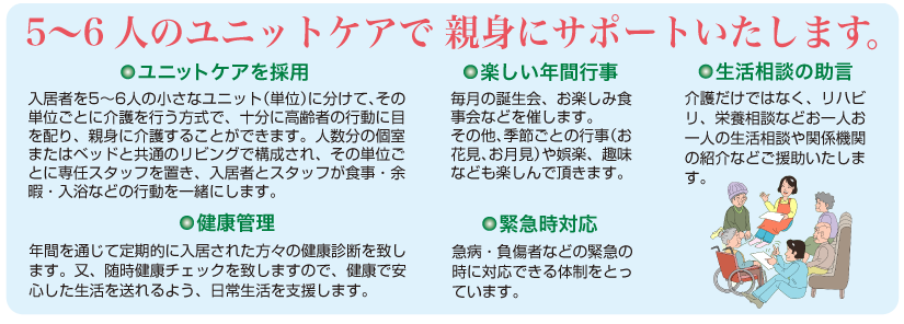 ケアハウス「はまゆう園」では、入居されるみなさまがプライバシー尊重のもとで、お元気で心豊かな自主的な生活を過ごされますようにお手伝いできればと考えております。お年寄り向きに工夫された個室や、おいしい食事や入浴のサービス、緊急時の対応は勿論のこと、みなさまが自立して日常生活を楽しく快適に暮らせるよう支援しています。