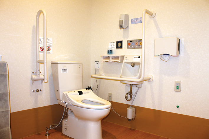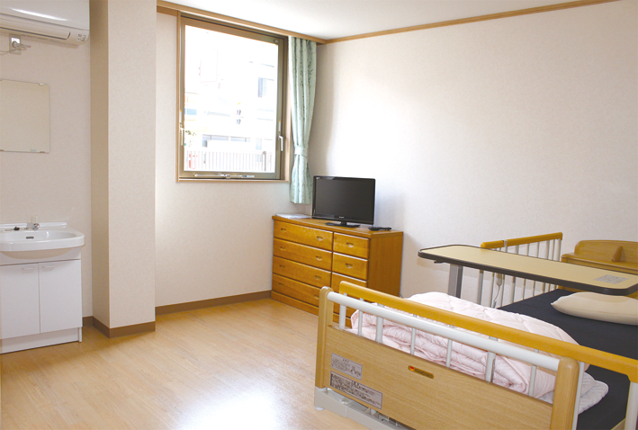 各部屋にはトイレ、洗面所、エアコン、介護ベッド、テレビ、チェストが備え付けられています。