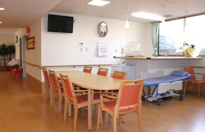 広々としたエントランスで訪問者の方とゆっくりくつろいだ時間を過ごしたり、明るい食堂で楽しくお食事、ゆったりと快適に入浴できる浴室設備、ふれあいのスペースでゆとりと安心に満ちた暮らしができます。